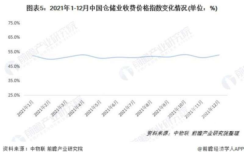 根據中國物流與采購聯合數據,2021年1-12月,中國倉儲業務量指數均值為53.1%,同比增長0.7%,整體位于枯榮線(50%)以上,反映出倉儲行業需求在企業生產活動加快和消費品需求保持回升的背景下,仍保持較為穩定的態勢。